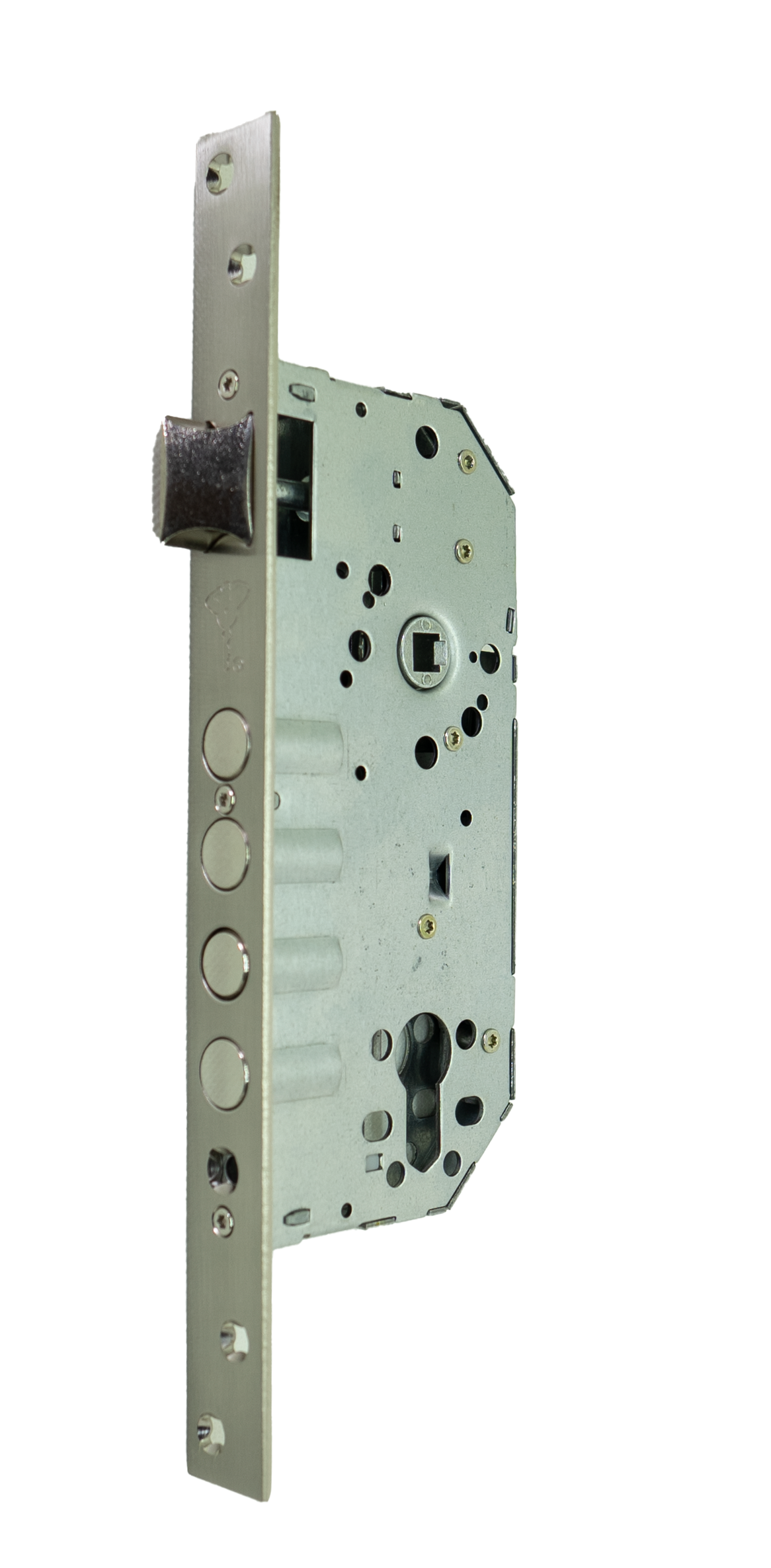 Accionada mediante cilindro Euro con leva DIN. Doble giro del cilindro con un