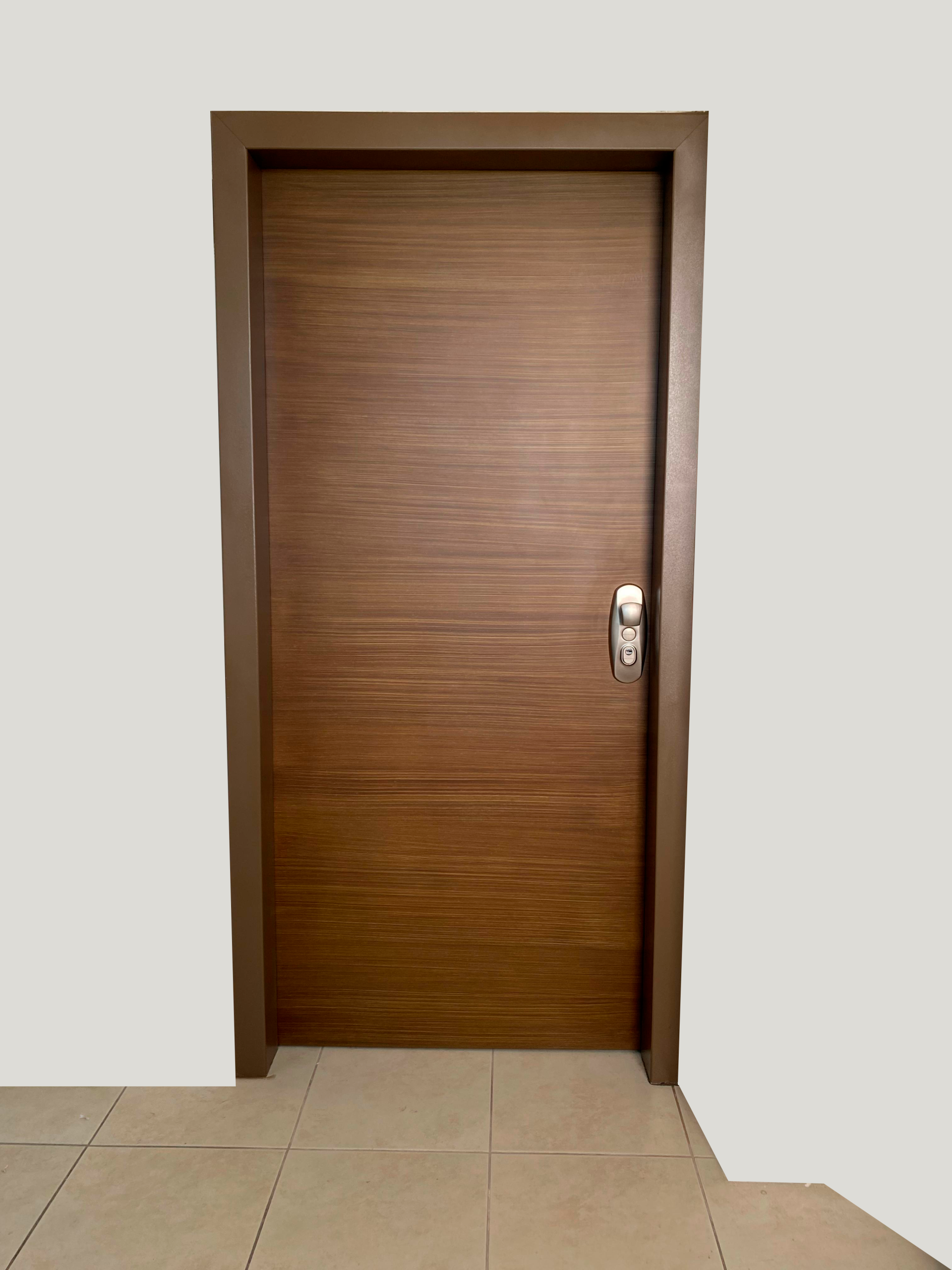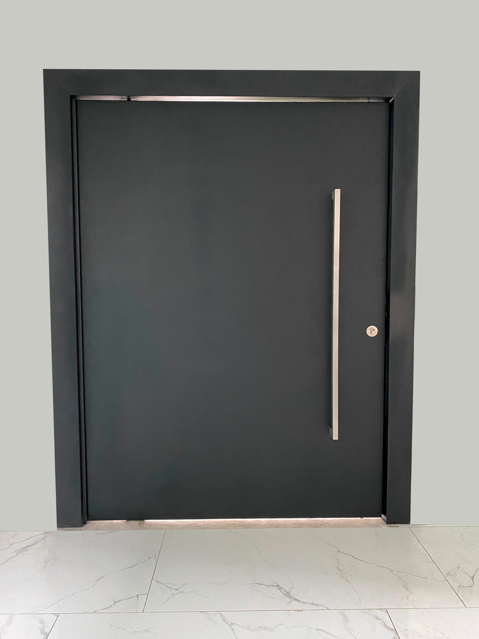 - Marcos fabricados con planchas de acero galvanizado, que actúan como refuerzos verticales y horizontales, incorporados al cuerpo de la puerta para lograr una máxima seguridad.