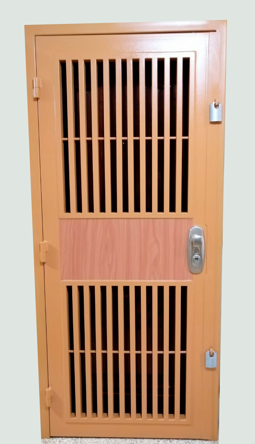 - Puertas fabricadas con planchas de acero galvanizado.